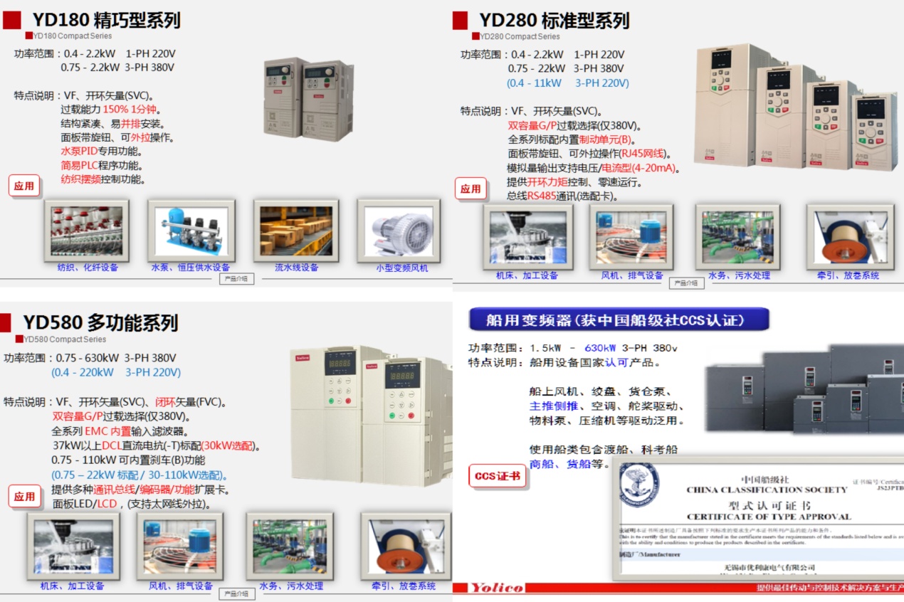 - YD3000N-CCS船用:獲得CCS中國船級社認證,支持船用推進系列、空調水泵等傳動設備。