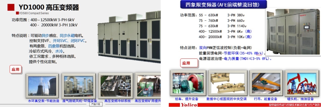 - YD1000高壓變頻器:高可靠性設計,先進的單元旁路技術,獨特的永磁電機驅動算法。