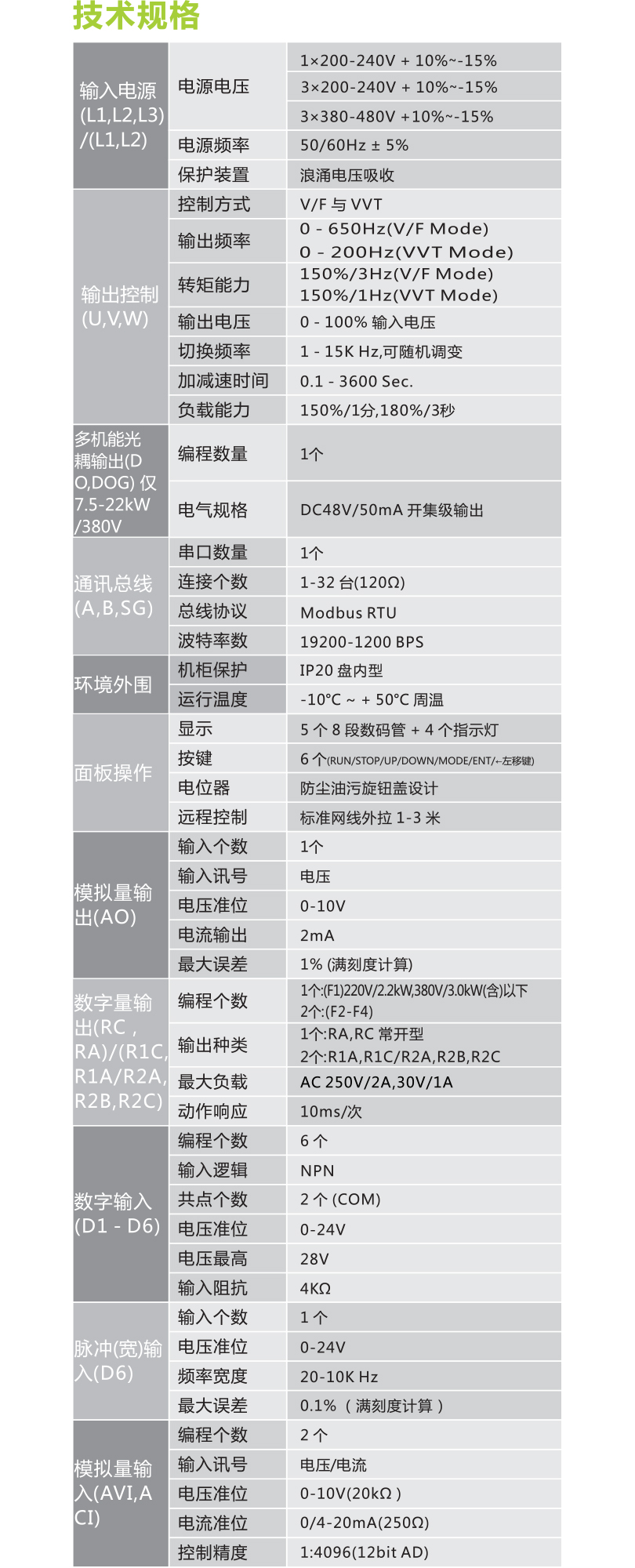 單相220VAC:0.75-4kW