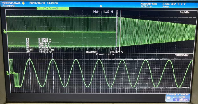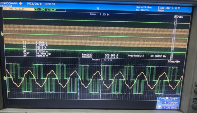 變頻器以39.3HZ(157rpm)運行時的電流電壓波形
