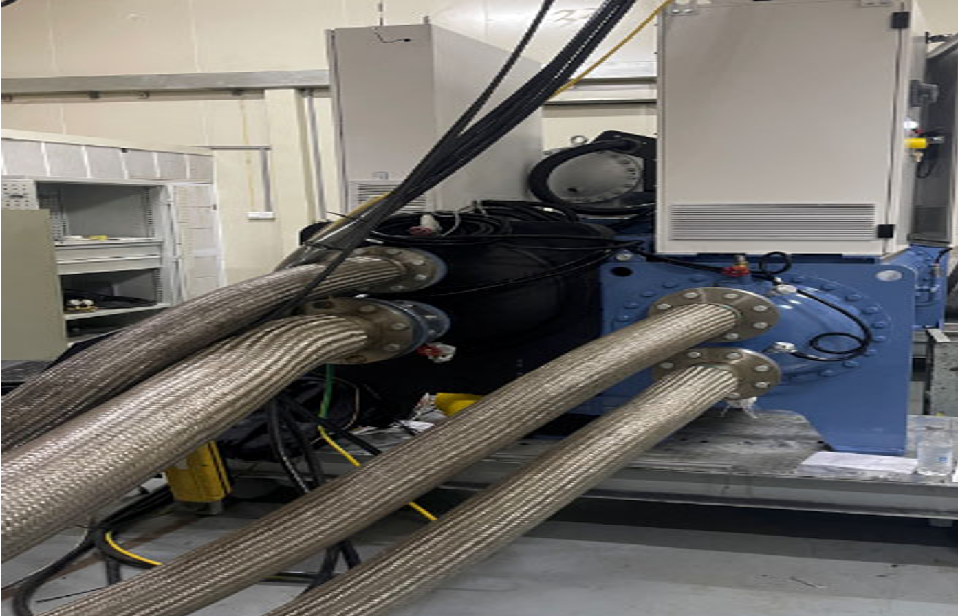 根據(jù)磁懸浮電機的電機參數(shù),我司選擇了額定電流 300A的160KW液態(tài)風冷變頻器。另應客戶要求在變頻器 和電機之間加裝正弦波濾波器。