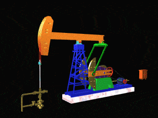 磕頭機(游梁式抽油機)是開采石油的一種機器設備,工作時電動機轉動產生的動力經變速箱進行減速等處理后,傳遞給曲柄連桿機構。曲柄連桿機構將這種旋轉運動轉化為驢頭的上下運動,這個過程就好像在重復人類磕頭的動作,所以被俗稱為“磕頭機”。驢頭通過連接光桿、抽油桿,帶動井下抽油泵的柱塞作上下運動,從而不斷地把井中的原油抽出井筒。而直線電機的工作原理則是利用電能直接產生一個直線運動的電動機。